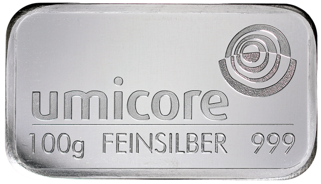 Lingot de 250 g d’argent fin, marque "umicore" ou "metalor" (fabrication suisse d’excellente qualité, état neuf, scellé dans sa pochette plastique d’origine).
